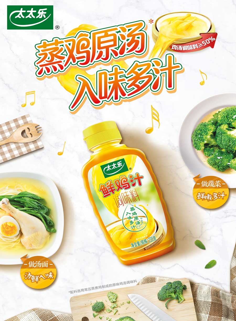 上海太太樂(lè)食品有限公司創(chuàng)立于1988年,中國(guó)雞精、雞粉行業(yè)標(biāo)準(zhǔn)制定單位之一,并于1999年加入世界知名的食品飲料公司瑞士雀巢,充分利用國(guó)際資源加速產(chǎn)品和技術(shù)研發(fā)。秉承“太太樂(lè),讓生活更美好”的企業(yè)愿景,太太樂(lè)一直致力于鮮味科學(xué)的研究和推廣,帶動(dòng)鮮味產(chǎn)業(yè)的技術(shù)創(chuàng)新,不斷為消費(fèi)者帶來(lái)健康又美味的新一代調(diào)味品。