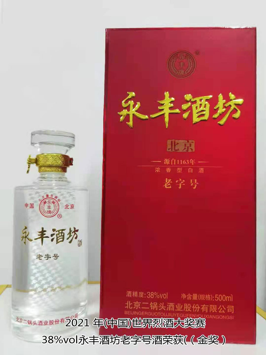 北京二鍋頭酒業(yè)股份有限公司傳承老北京二鍋頭傳統(tǒng)釀造技藝,產(chǎn)品選用優(yōu)質(zhì)高粱為原料,以麩曲為糖化發(fā)酵劑,采用老五甑發(fā)酵法、混蒸混燒、看花接酒、掐頭去尾、長期儲存、精工勾兌而成。產(chǎn)品多次獲得各種優(yōu)質(zhì)產(chǎn)品稱號,“永豐牌”商標(biāo)2000年度、2004年度、2007年度連續(xù)三屆被北京市工商行政管理局認(rèn)定為北京市著名商標(biāo);2003年9月,“永豐”二鍋頭、京王子酒被評為北京市優(yōu)秀新產(chǎn)品獎;2004年,被授予“中國白酒質(zhì)量優(yōu)秀產(chǎn)品”及首都市場“質(zhì)量、信譽(yù)、服務(wù)”優(yōu)秀企業(yè)、優(yōu)質(zhì)產(chǎn)品稱號;2006年11月,被評為“中國歷史文化名酒”;2007年12月,被評為“AAA”級信用企業(yè),同年榮獲“中國質(zhì)量過硬知名品牌”;2011年5月,“永豐”牌被中華人民共和國商務(wù)部評為“中華老字號”;2021年10月,在2021國際酒類(中國)大獎賽中,北京二鍋頭酒業(yè)股份有限公司共獲得五枚金牌,其中38%vol永豐酒坊老字號酒、46%vol永豐品鑒酒、52%vol醉流霞瓷瓶酒、50%vol永豐粱大俠(典藏)酒四款產(chǎn)品榮獲“金獎”,50%vol永豐二鍋頭(國運(yùn))酒榮獲“大金獎”。此次大獎賽北京二鍋頭酒業(yè)股份有限公司榮登“金獎”之首,得到了國際酒類(中國)大獎賽組委會及全國頂級評酒大師、酒業(yè)泰斗專家們的一致好評,肯定了北京二鍋頭酒業(yè)股份有限公司專業(yè)技術(shù)人員高超的技藝和敬業(yè)的工匠精神。