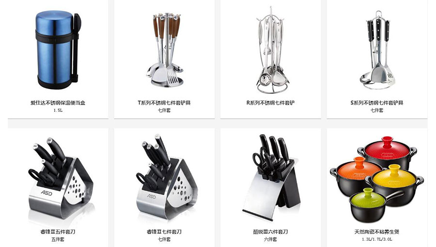 主要產(chǎn)品:愛(ài)仕達(dá)家電、炊具、家居