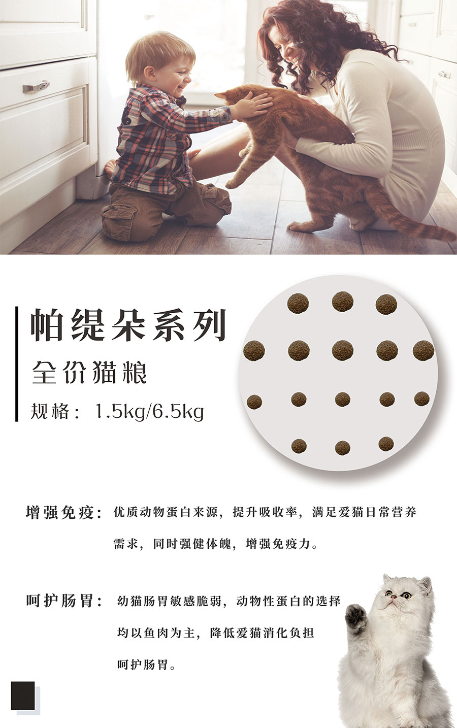 帕緹朵品牌源自熱情、活力的西班牙,致力于生產(chǎn)營(yíng)養(yǎng)、美味、安全的高端寵物食品,并于2017年進(jìn)入中國(guó)市場(chǎng),創(chuàng)立帕緹朵(北京)國(guó)際生物科技有限公司。公司于2018年將帕緹朵復(fù)元糧系列產(chǎn)品引入國(guó)內(nèi),該系列配方由西班牙皇室養(yǎng)寵食譜孕育而來(lái),并與先進(jìn)技術(shù)相結(jié)合,通過(guò)加入小分子肽,有效提升食品消化率,優(yōu)化愛(ài)寵健康狀態(tài)。產(chǎn)品嚴(yán)格執(zhí)行歐洲寵物食品標(biāo)準(zhǔn),按照合理的膳食搭配,選取來(lái)自北緯30°的頂級(jí)食材,淬煉出極致美味,讓愛(ài)寵樂(lè)享健康與尊貴。
