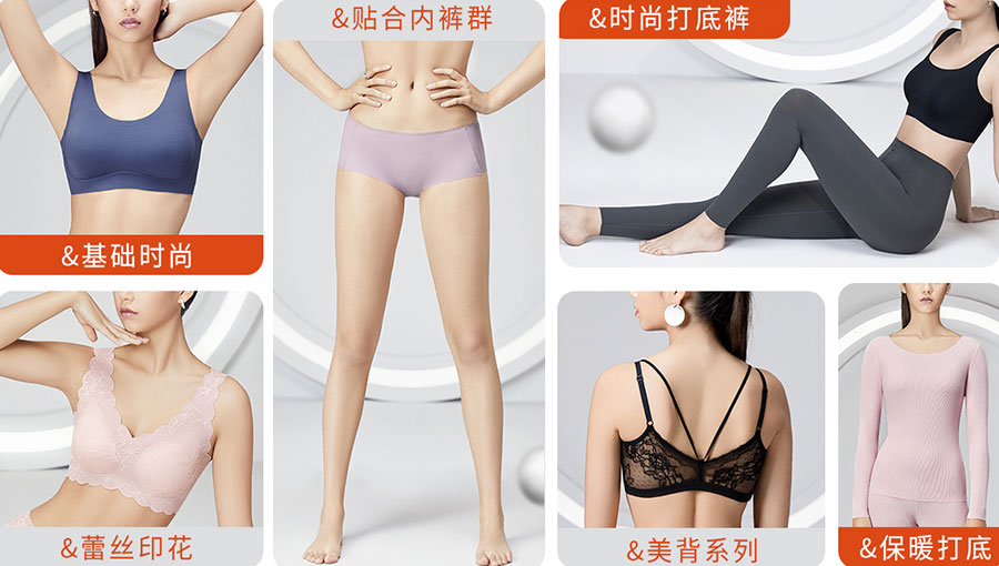 主要產(chǎn)品:曼妮芬、伊維斯、蘭卓麗、桑扶蘭、喬百仕、加一尚品、秘密武器、土豆先生內(nèi)衣