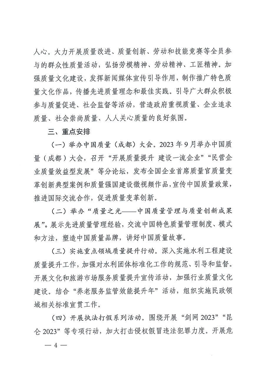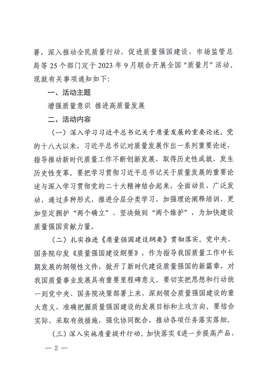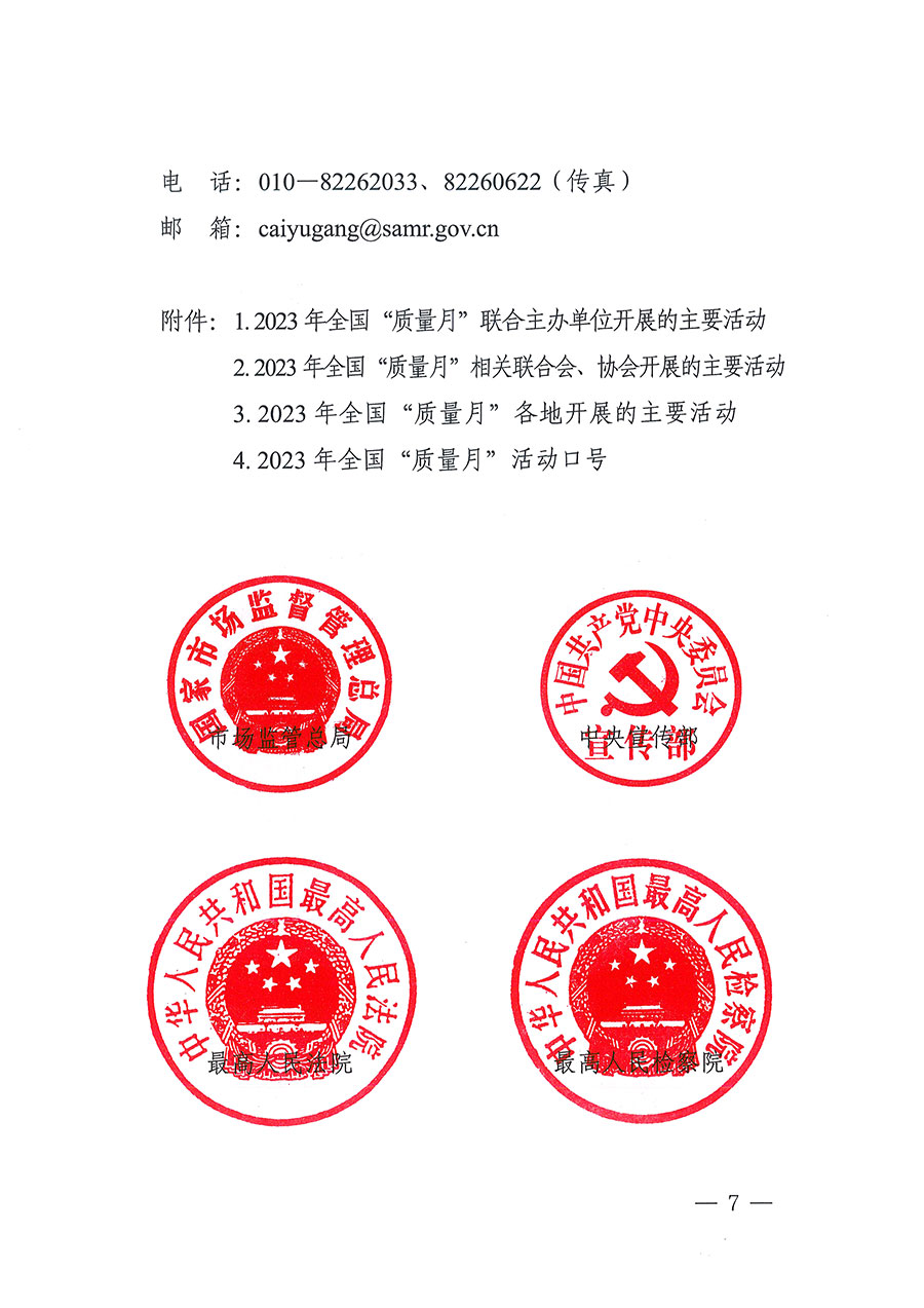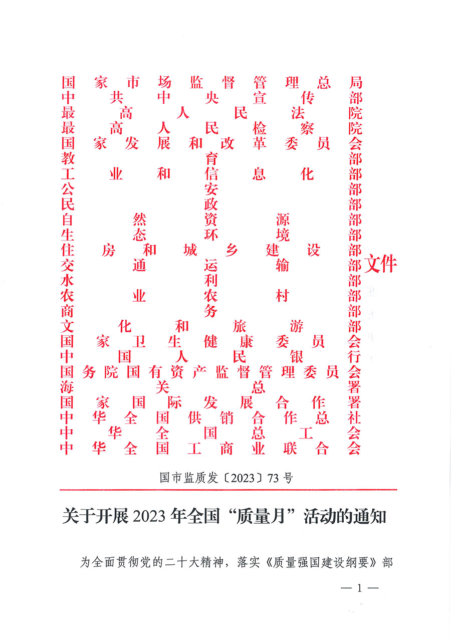 市場監(jiān)管總局聯(lián)合中央宣傳部、最高人民法院、最高人民檢察院、國家發(fā)展改革委、教育部、科技部等25個部門定于2023年9月聯(lián)合開展全國“質(zhì)量月”活動。圍繞“增強質(zhì)量意識 推進高質(zhì)量發(fā)展”的主題,各部門將在質(zhì)量月期間開展多項活動:中央宣傳部結(jié)合“劍網(wǎng)2023”專項行動加大網(wǎng)絡(luò)侵權(quán)盜版打擊力度;最高人民法院將發(fā)布一批食品藥品安全刑事審判典型案例;最高人民檢察院依法懲治侵權(quán)假冒犯罪,開展危害食品藥品安全犯罪案件辦理專題培訓,發(fā)布知識產(chǎn)權(quán)檢察綜合保護指導性案例;工業(yè)和信息化部組織開展全國質(zhì)量標桿經(jīng)驗交流活動,舉辦“中國制造”品牌故事大賽;民政部結(jié)合“養(yǎng)老服務(wù)監(jiān)管效能提升年”活動,組織開展民政領(lǐng)域相關(guān)標準宣貫工作;自然資源部聯(lián)合市場監(jiān)管總局推動開展2023年自然資源檢驗檢測機構(gòu)能力驗證工作和“雙隨機、一公開”監(jiān)督檢查工作,開展重要標準宣貫。市場監(jiān)管總局將舉辦限制商品過度包裝宣傳發(fā)布活動,開展“計量服務(wù)中小企業(yè)行”,組織“全國檢驗檢測機構(gòu)開放日”活動,圍繞綠色產(chǎn)品認證、有機產(chǎn)品認證開展相關(guān)宣傳周活動。