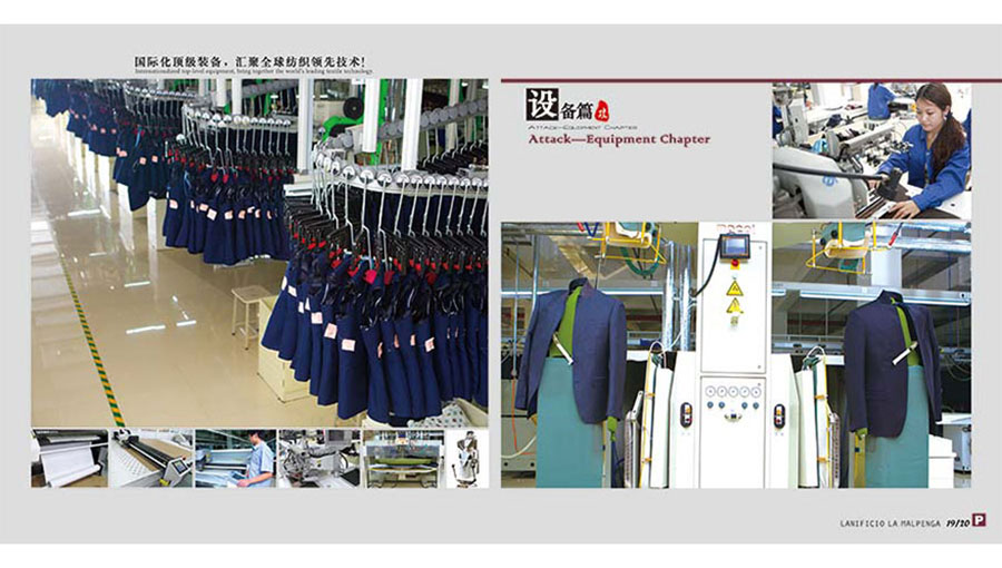 紡織板塊專注于SINFONIA、ARMONIA、REGAL精紡紗、半精紡紗、粗紡紗、花式紗等各類針織紗線、高檔精紡呢絨面料以及LANIFICIO LA MALPENGA職業(yè)裝和PALLADIO高端商務(wù)服裝的生產(chǎn),年產(chǎn)各類無(wú)結(jié)毛紗40000噸,高檔精紡面料1000萬(wàn)米,西服100萬(wàn)套,襯衫200萬(wàn)件。