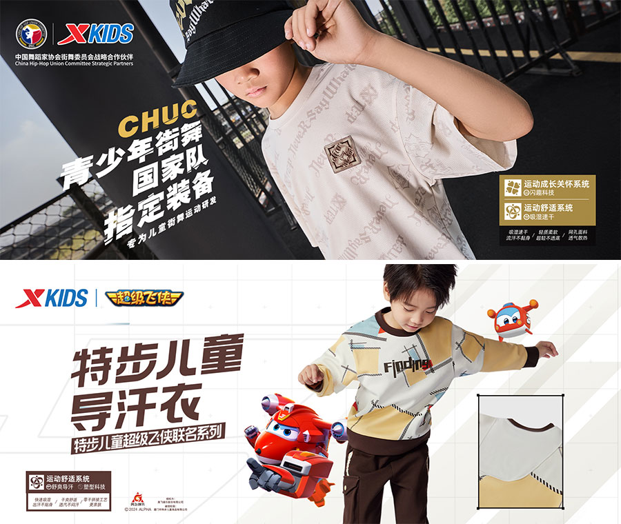 特步兒童一直在不斷尋找更多文化表達的新方式,為更多富含營養(yǎng)的文化資源創(chuàng)造與大眾親密接觸的機會。深入兒童圈層,以大國少年為核心,圍繞體育強國、文化愛國、科技興國三個內(nèi)核深度探索。與中國青少年基金會共同推動“驕陽計劃”、攜手中國舞蹈家協(xié)會街舞委員會共同發(fā)起“CHUC青少年街舞成長計劃”,攜手中國航天博物館共同推出“百萬少年問天計劃”。這些無一不說明特步兒童正一步一步將品牌文化融合到每一位少年的生活當中。