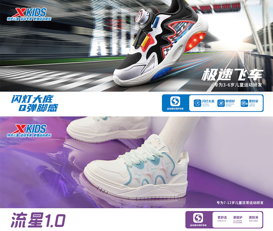主要產(chǎn)品:特步兒童童鞋、童裝、兒童配件