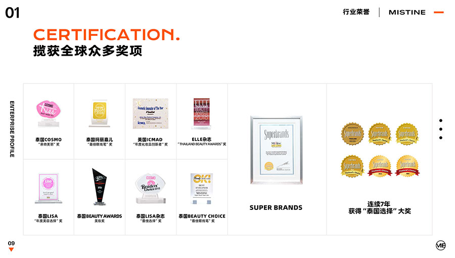 36年來(lái),MISTINE蜜絲婷步履不停,堅(jiān)持從消費(fèi)者出發(fā),以優(yōu)質(zhì)專研產(chǎn)品、適時(shí)而動(dòng)的渠道策略和持續(xù)發(fā)力的品牌塑造,贏得眾多消費(fèi)者的喜愛(ài)和行業(yè)內(nèi)外的贊許。迄今,MISTINE蜜絲婷已連續(xù)七年攬獲“泰國(guó)選擇”大獎(jiǎng),同時(shí)先后榮獲中國(guó)化妝品大會(huì)藍(lán)玫獎(jiǎng)「2022年度競(jìng)爭(zhēng)力品牌」、IQF國(guó)際品質(zhì)節(jié)暨消費(fèi)領(lǐng)導(dǎo)力峰會(huì)「杰出消費(fèi)影響力品牌」、CAQI中國(guó)質(zhì)量網(wǎng)「全國(guó)美妝行業(yè)質(zhì)量領(lǐng)先品牌」、天貓金妝獎(jiǎng)超級(jí)單品「年度防曬獎(jiǎng)」、凱度消費(fèi)者指數(shù)「極具成長(zhǎng)力品牌」等榮譽(yù)。