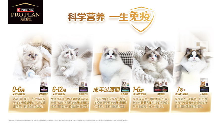 *指營養(yǎng)物質為免疫系統(tǒng)提供物質基礎和能量支持,生命一直需要根據(jù)免疫能力的強弱調整生活方式。蔡旋,鄧百川, 劉策等著. 功能性寵物食品學[M]. 北京:中國農業(yè)出版社,2023.通過科學營養(yǎng)追求寵物的一生免疫,也是品牌的美好愿景。