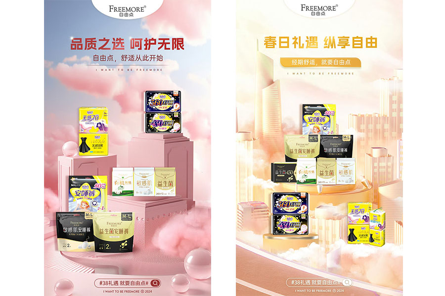 主要產(chǎn)品:自由點益生菌衛(wèi)生巾、有機純棉衛(wèi)生巾、敏感肌衛(wèi)生巾、無感七日衛(wèi)生巾、好之系列紙尿褲、拉拉褲