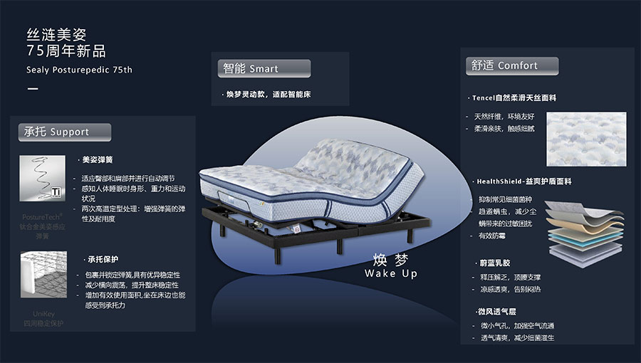 絲漣SEALY1881年誕生于美國,自1885年第一張絲漣床墊問世伊始,便憑借其卓越性能與舒適安睡體驗聲名大噪。1950年,絲漣開創(chuàng)床墊與醫(yī)學(xué)權(quán)威共研的先河,絲漣美姿以科學(xué)的脊柱支撐理念徹底重塑了床墊行業(yè)。75年來,持續(xù)的技術(shù)升級和創(chuàng)新使得美姿彈簧不斷進(jìn)化,只為打造更加舒適健康的睡眠體驗。