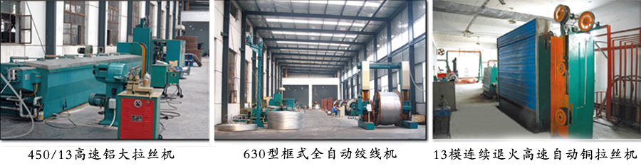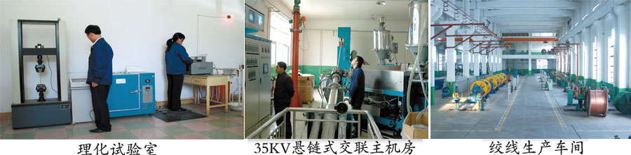 公司主要生產設備有:自動化懸鏈式干法交聯生產線;自動化銅、鋁拉絲生產線;成纜生產線;絞線生產線;鎧裝生產線;150型以下絕緣擠包生產線;高速屏蔽編織生產線;耐火電纜生產線;預分支電纜生產線等大型配套電纜生產設備60多臺套。