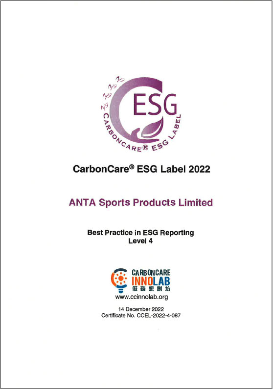 此外,安踏集團(tuán)于低碳想創(chuàng)坊(Carbon Care Innovation Lab)中獲頒「ESG報(bào)告最佳匯報(bào)實(shí)踐第四級(jí)」,較去年提升兩級(jí),反映集團(tuán)ESG報(bào)告表現(xiàn)優(yōu)異,在公司董事局的問(wèn)責(zé)度、實(shí)質(zhì)性評(píng)估、社會(huì)關(guān)鍵績(jī)效指標(biāo)的披露,以及企業(yè)氣候行動(dòng)的努力亦得到外界的認(rèn)可。安踏集團(tuán)曾于過(guò)往連續(xù)三年成功取得「低碳關(guān)懷標(biāo)簽」,因此本年度獲額外頒發(fā)「低碳關(guān)懷星級(jí)標(biāo)簽」,以表彰過(guò)往在ESG方面的成果。
