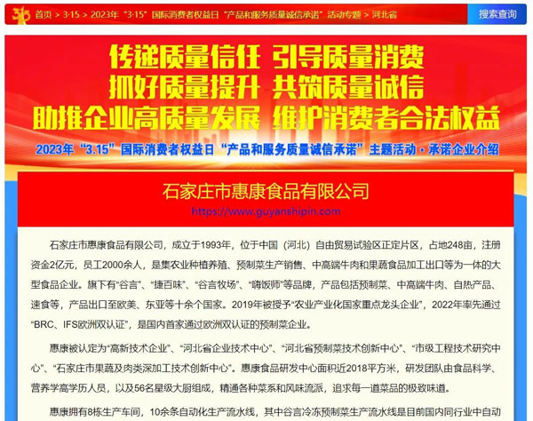2023年03月15日 14:52????信息來源:石家莊市惠康食品有限公司
