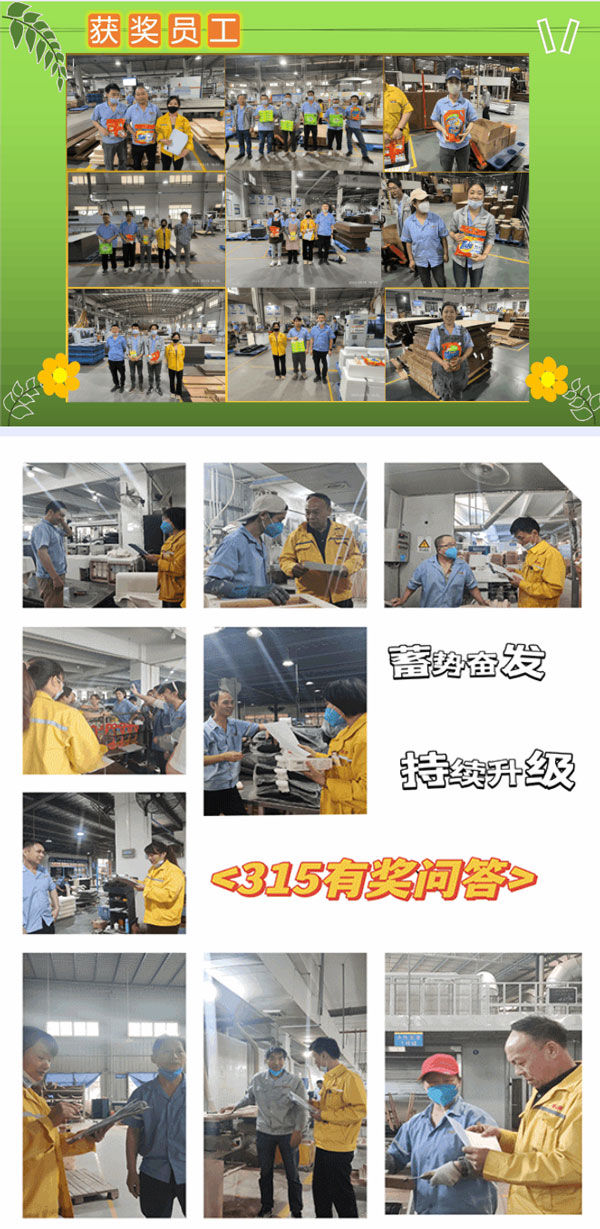 “3.15”活動(dòng)圓滿落下帷幕,對(duì)于廣東華盛家具集團(tuán)而言,自成立以來(lái)始終將“創(chuàng)鑄名牌,服務(wù)社會(huì)”企業(yè)使命深植于心,外化于行,堅(jiān)守初心“用心創(chuàng)造品質(zhì),匠心鑄造品牌,為客戶乃至社會(huì)提供更優(yōu)質(zhì)產(chǎn)品和體驗(yàn)”堅(jiān)持質(zhì)在每一天,365天每天都是“3.15”,此次活動(dòng)的成功舉辦標(biāo)志著2023年廣東華盛家具集團(tuán)宣傳系列活動(dòng)全面展開(kāi),全員投身參與企業(yè)“同行業(yè)、同類型、最高檔次”品質(zhì)建設(shè),形成產(chǎn)品質(zhì)量“零缺陷”, 人人創(chuàng)造質(zhì)量,人人享受質(zhì)量新局面,推動(dòng)企業(yè)邁入高質(zhì)量跨越發(fā)展新時(shí)代,再創(chuàng)佳績(jī),2023年蓄勢(shì)奮發(fā),持續(xù)升級(jí)。