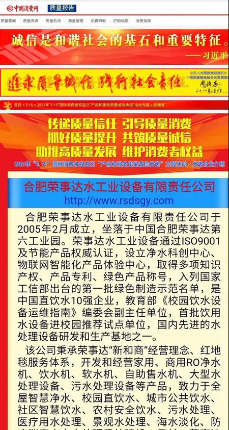誠信315 | 熱烈祝賀榮事達(dá)榮獲“全國產(chǎn)品和服務(wù)質(zhì)量誠信示范企業(yè)”“全國質(zhì)量信得過產(chǎn)品”“全國凈水行業(yè)質(zhì)量領(lǐng)先品牌”等多項(xiàng)榮譽(yù)