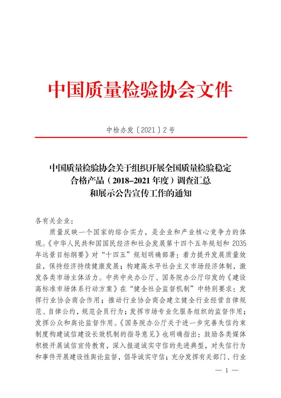 中國質量檢驗協會關于組織開展全國質量檢驗穩(wěn)定