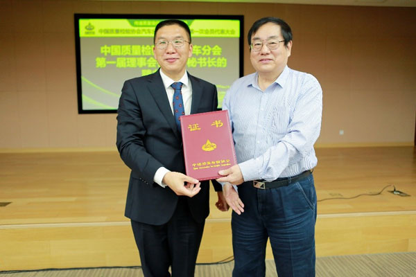圖為中國(guó)質(zhì)量檢驗(yàn)協(xié)會(huì)副會(huì)長(zhǎng)張明為質(zhì)檢協(xié)會(huì)汽車分會(huì)